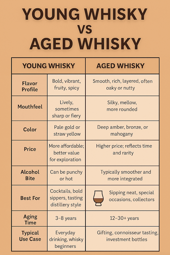 Here’s how I like to break it down when thinking about aged whisky vs new whisky: